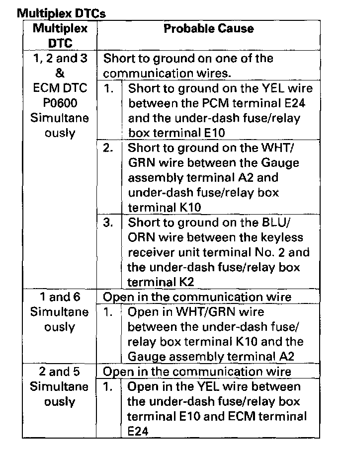 4. If all inputs were confirmed, or multiple circuits failed at the same time in Mode 2, go to the multiplex sleep mode test. If a single switch fails in Mode 2, troubleshoot its circuit.