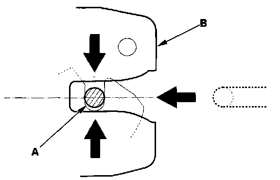 3. Install the striker in the reverse order of removal, and move the striker (A) up or down until it is centered in the seat-back latch (B).