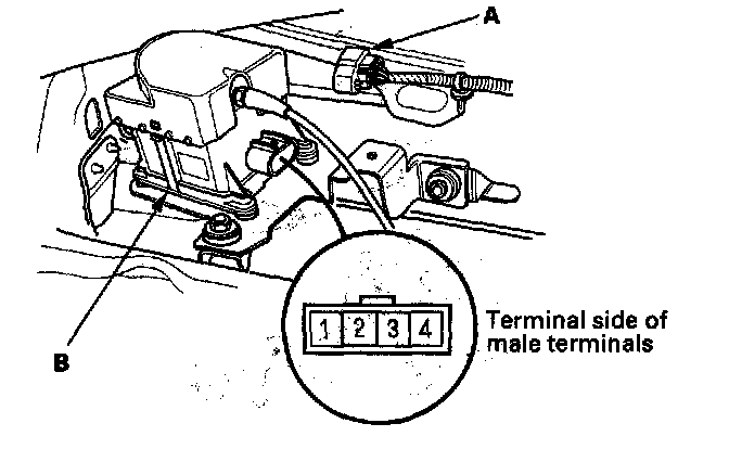 Cruise Control Actuator Test1. Disconnect the 4P connector (A) from the cruise control actuator (B).
