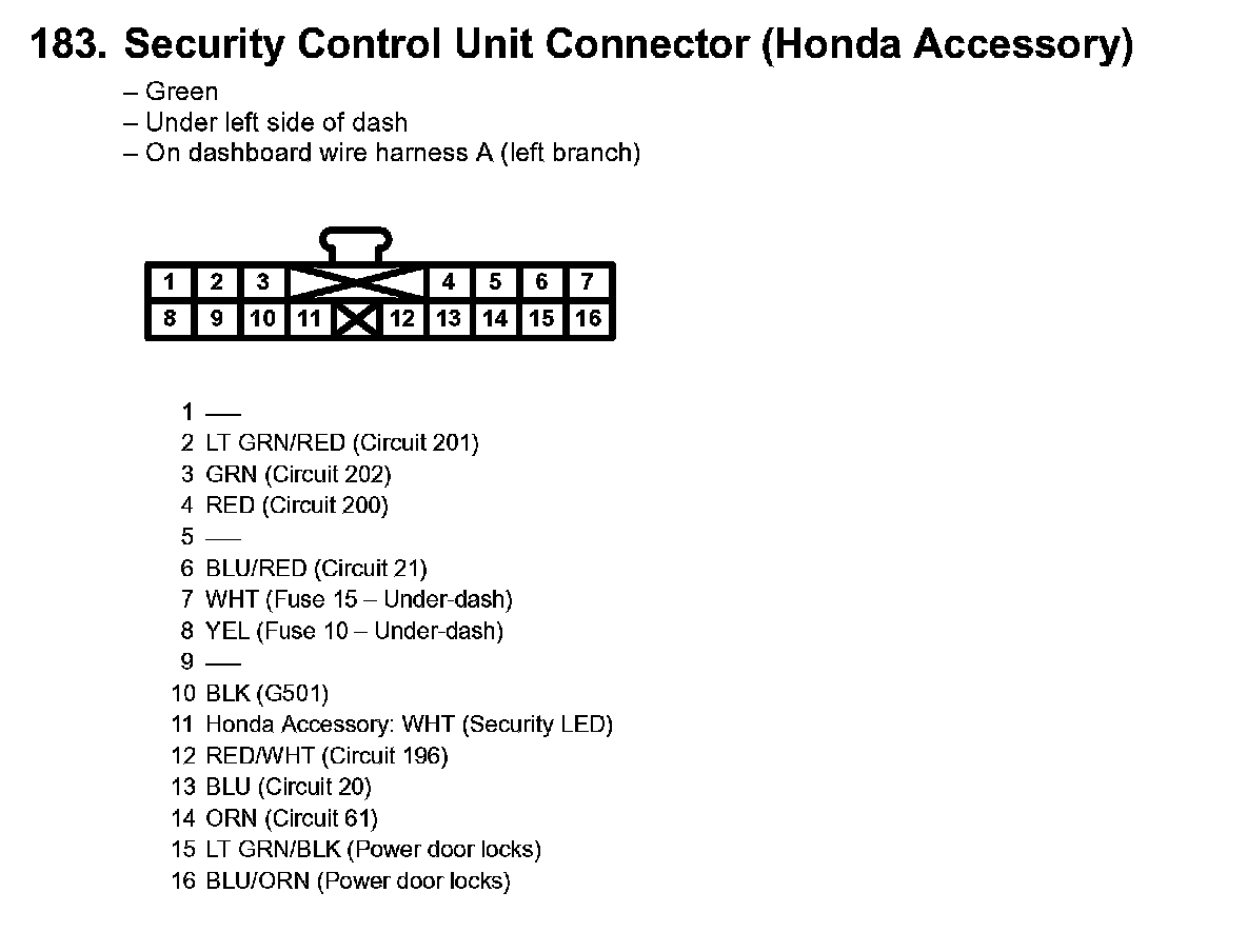 183. Security Control Unit Connector (Honda Accessory):
