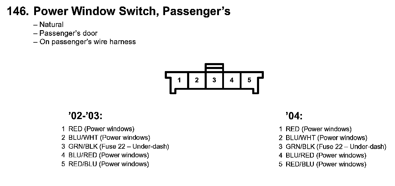 146. Power Window Switch, Passenger's: