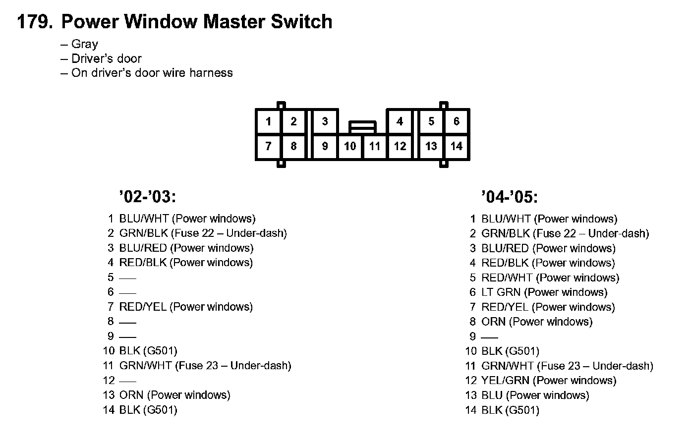 179. Power Window Master Switch: