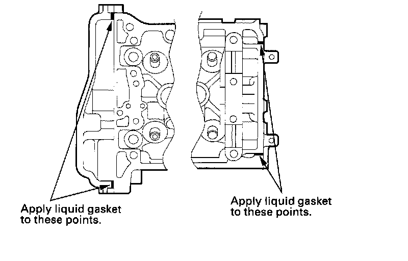 NOTE: Do not install the parts if 5 minutes or more have elapsed since applying liquid gasket. Instead, reapply liquid gasket after removing old residue.