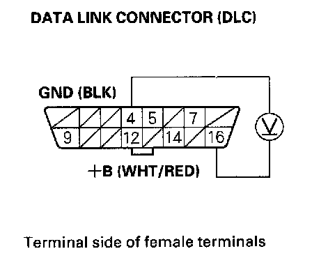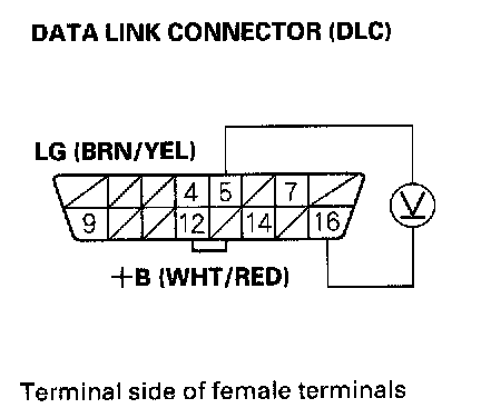3. Measure voltage between DLC terminals No.5 and No.16.