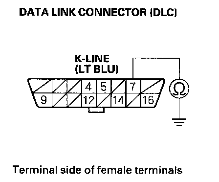 8. Check for continuity between DLC terminal No.7 and body ground.