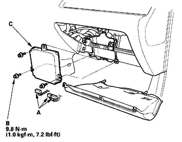 How to Remove the ECM for Testing1. Remove the passenger's dashboard lower cover, the passenger's kick panel, and the glove box.