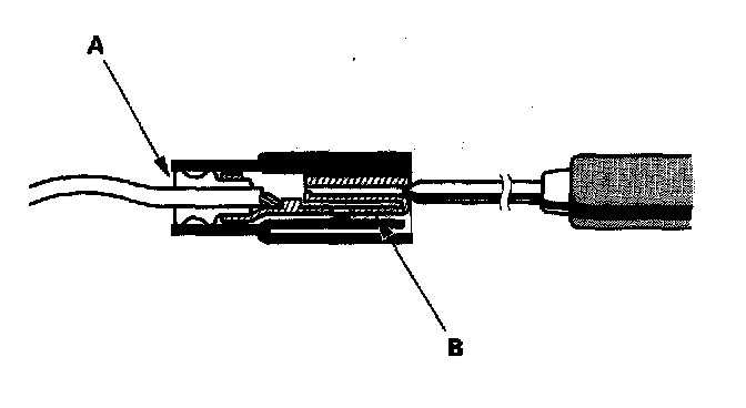 3. If you cannot get to the wire side of the connector or the wire side is sealed (A), disconnect the connector and probe the terminals (B) from the terminal side. Do not force the probe into the connector.