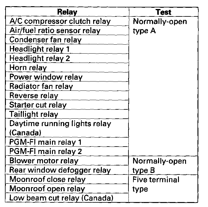 Power Relay TestUse this chart to identify the type of relay, then do the test listed for it.
