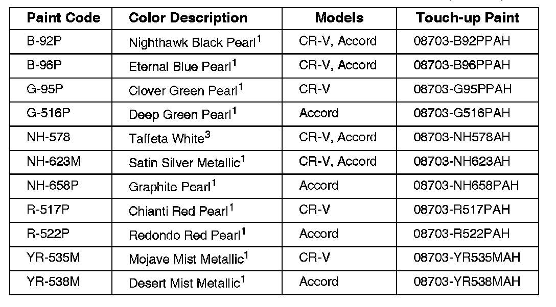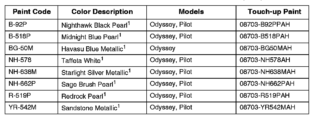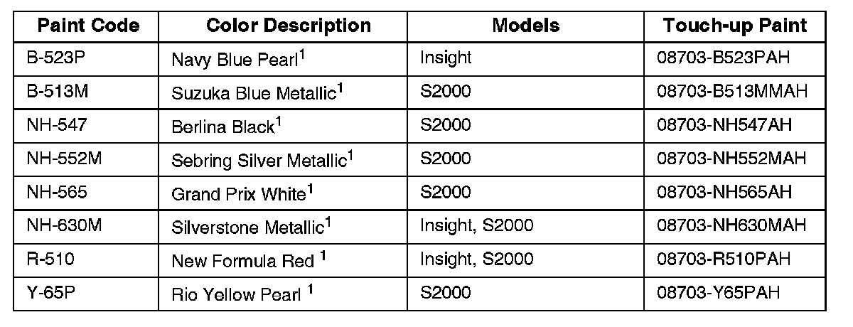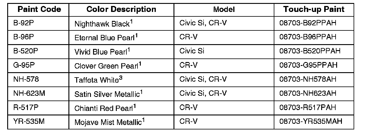 *American Honda does not endorse any paint company or type of paint; this information is for reference only.