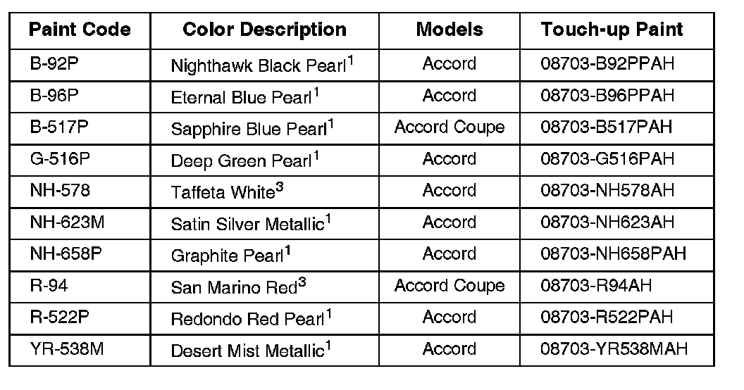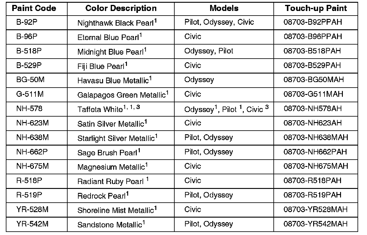 2004 Honda Paint Codes
