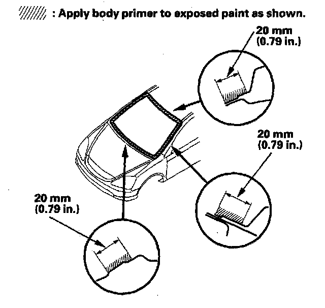 - Never touch the primed surfaces with your hands. If you do, the adhesive may not bond to the windshield properly, causing a leak after the windshield is installed.
