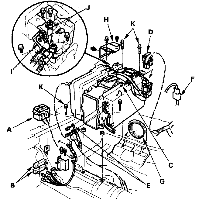 22. Remove the four PCU mounting bolts (K).