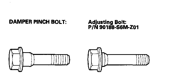 NOTE: The camber angle can be adjusted up to ± 30' (center of tolerance) by replacing one damper pinch bolt with the adjusting bolt. The camber angle can be adjusted up to 1°00' by replacing both damper pinch bolts with the adjusting bolts.