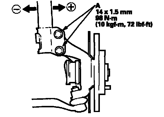 2. Loosen the damper pinch bolts (A), and adjust the camber by moving the bottom of the damper within the range of the damper pinch bolt free play.