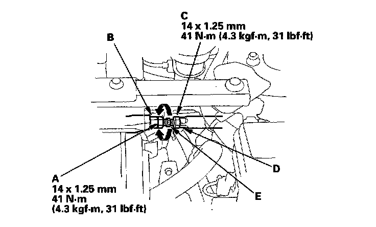 4. Turn the adjusting bolt (E) until the toe is correct.