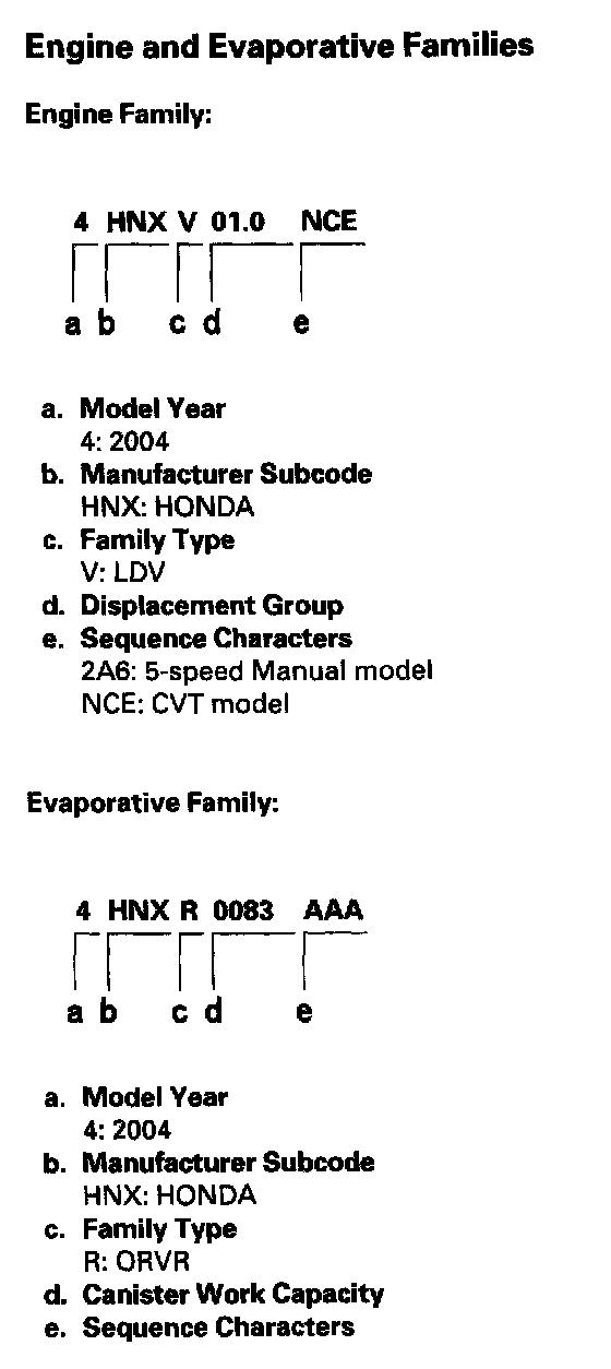Engine And Evaporative Families: