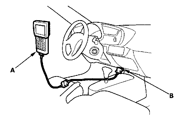 1. Connect the Honda PGM Tester (A) to the DLC (B).