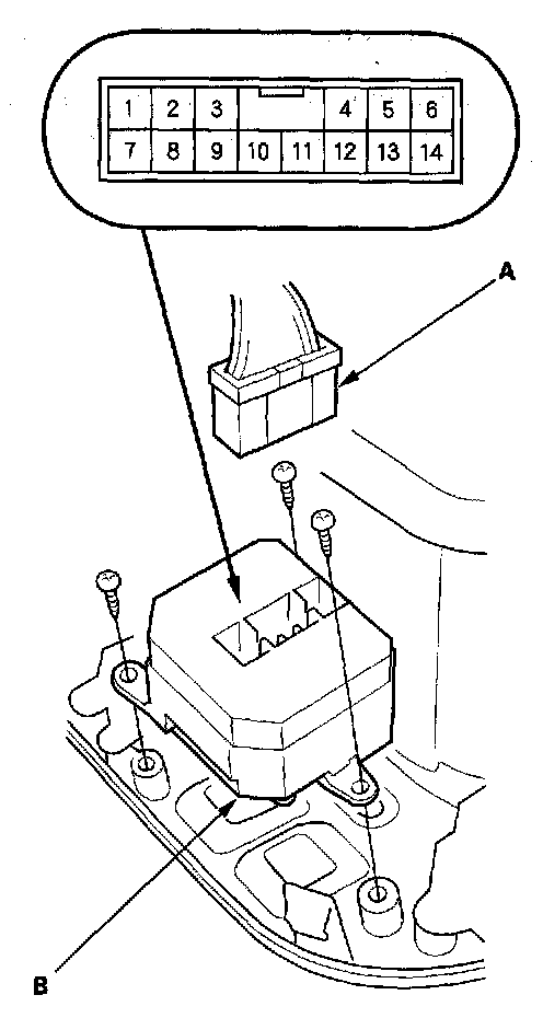 2. Disconnect the 14P connector (A) from the power window master switch (B).