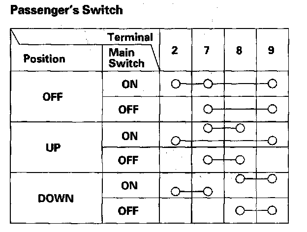 3. Check for continuity between the terminals in each switch position according to the table.