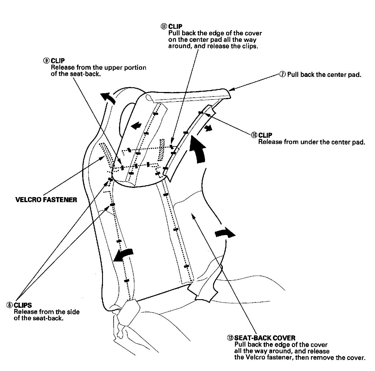 1. Remove the seat-back cover in numbered sequence.