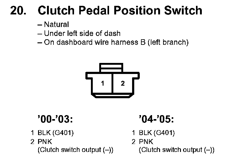 20. Clutch Pedal Position Switch:
