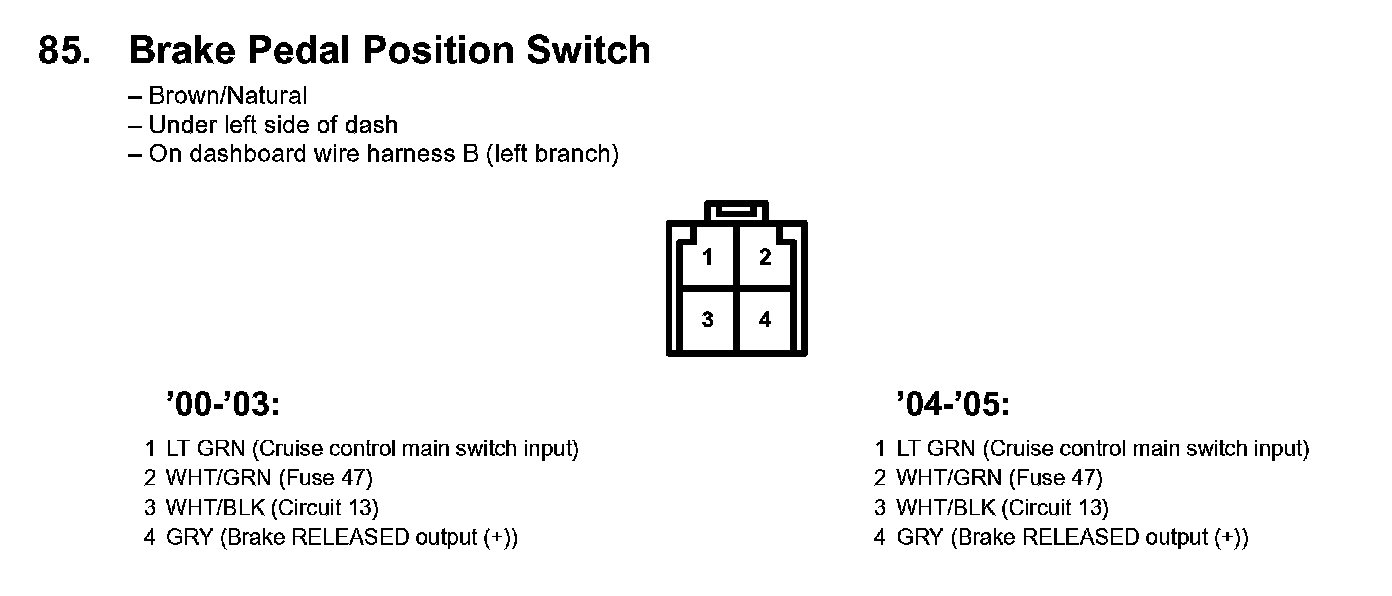 85. Brake Pedal Position Switch: