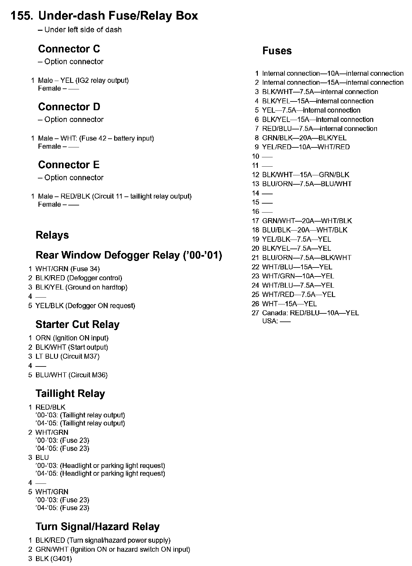 155. Under-dash Fuse/Relay Box:
