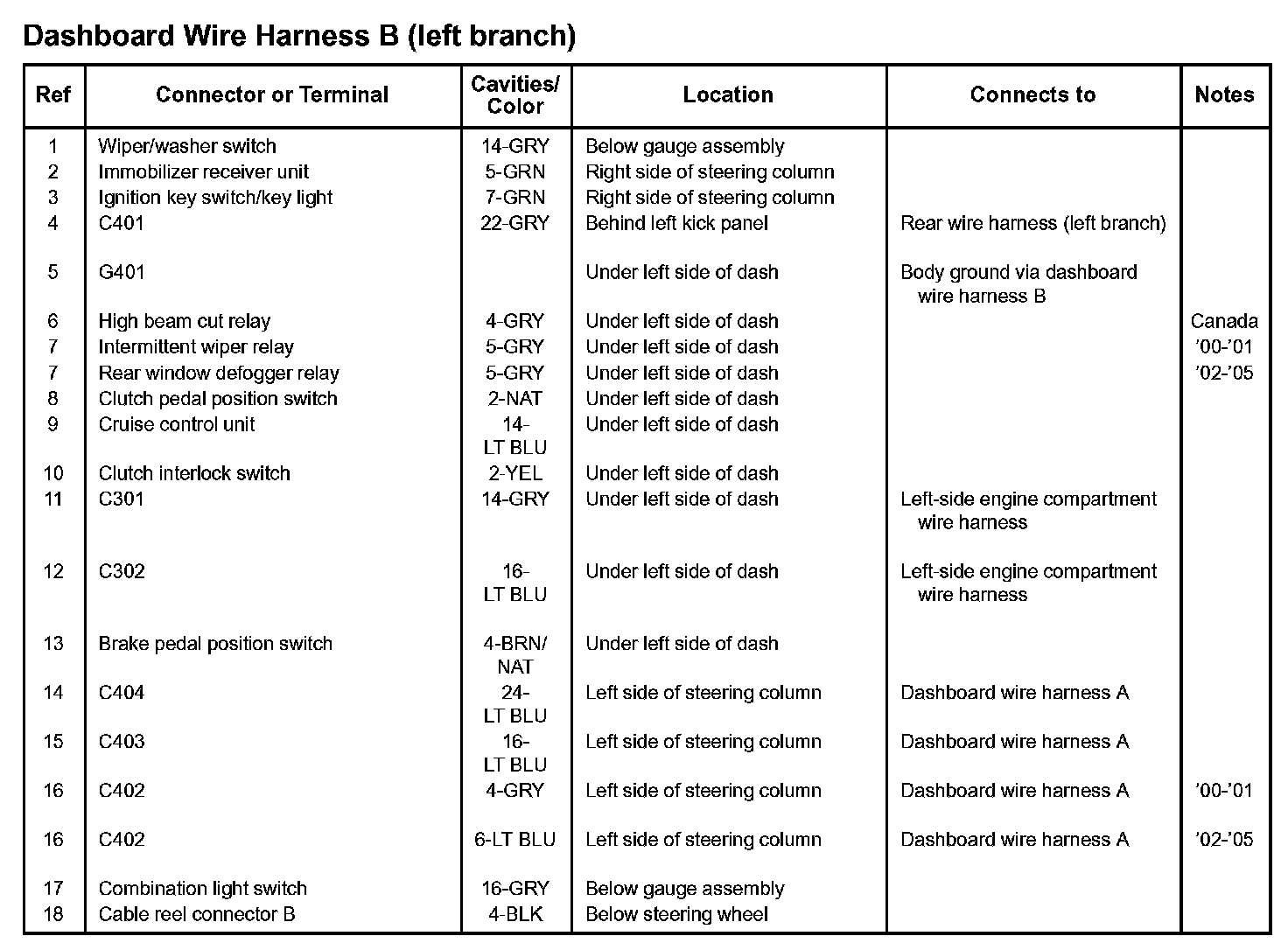Dashboard Wire Harness B (Left Branch):