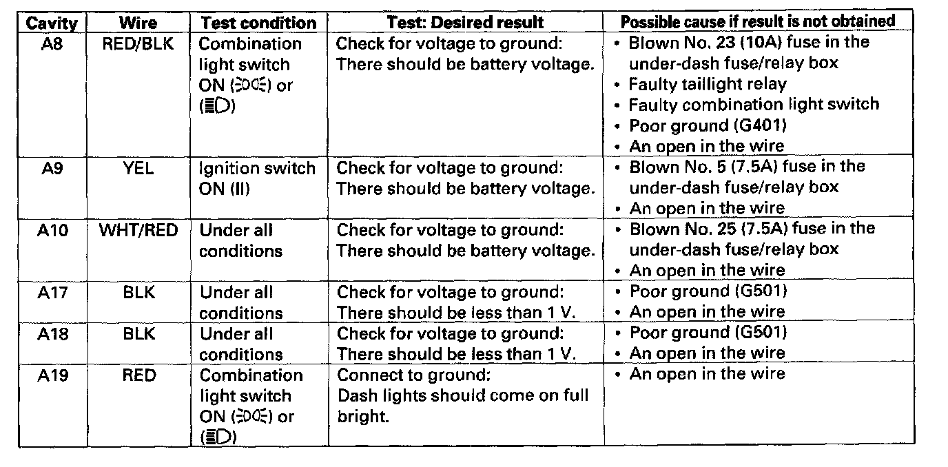2. Inspect the gauge assembly connector A (22P) terminals to be sure they are all making good contact.