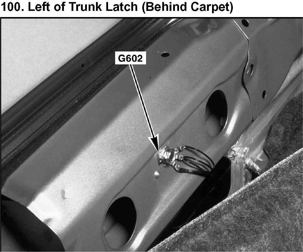 100. Left of Trunk Latch (Behind Carpet):