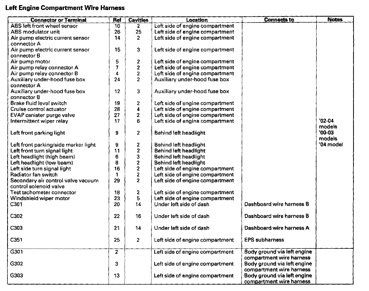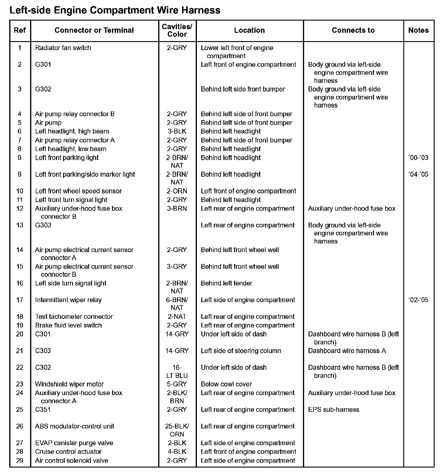 Left-side Engine Compartment Harness: