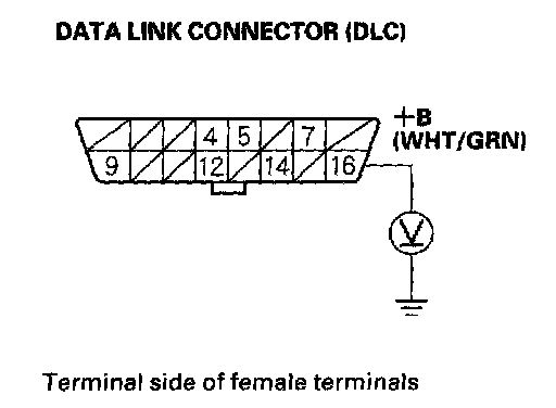 3. Measure voltage between DLC terminals No. 5 and No.16.