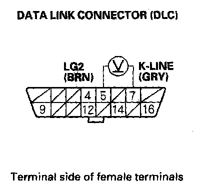 13. Measure voltage between DLC terminals No. 5 and No. 7.