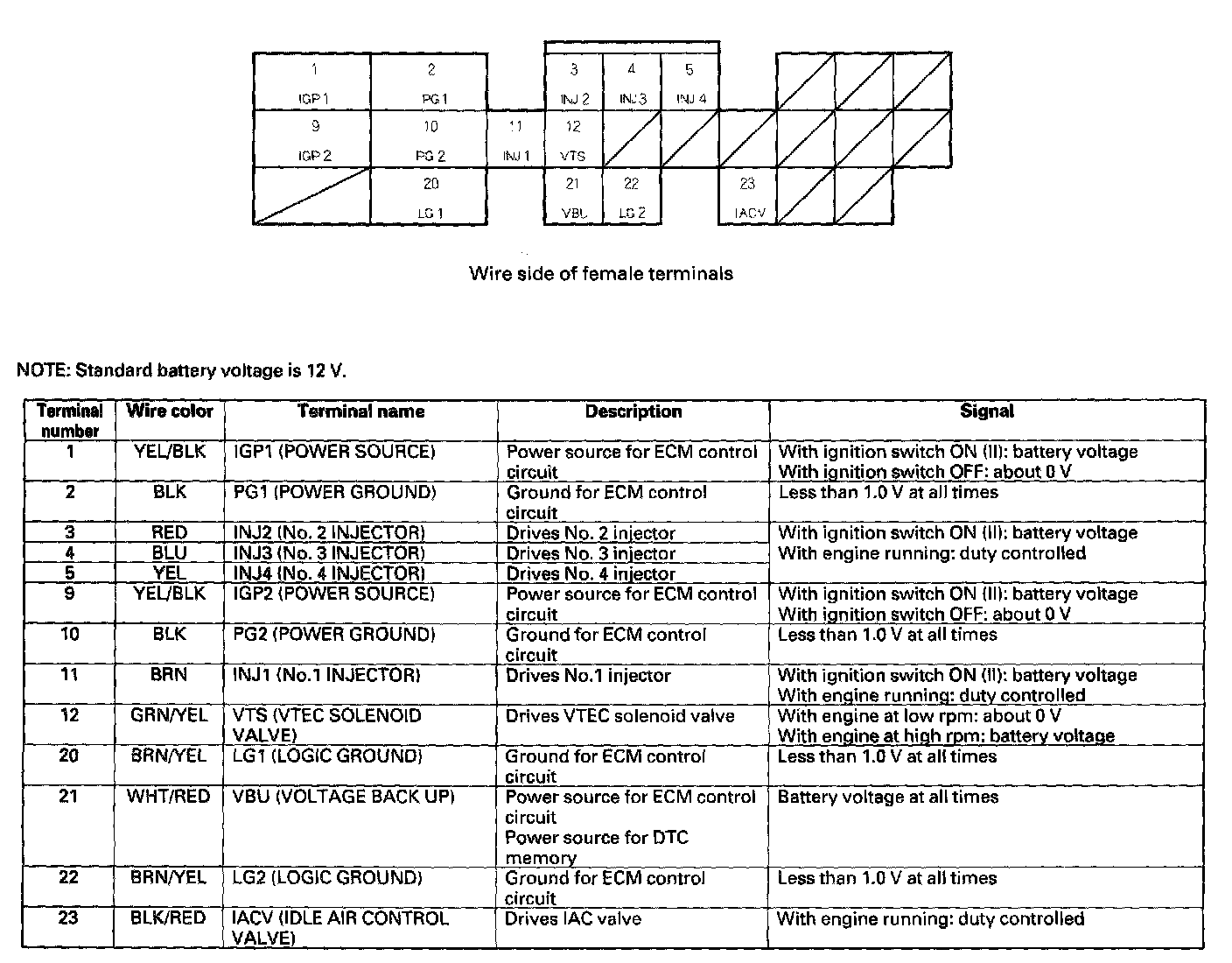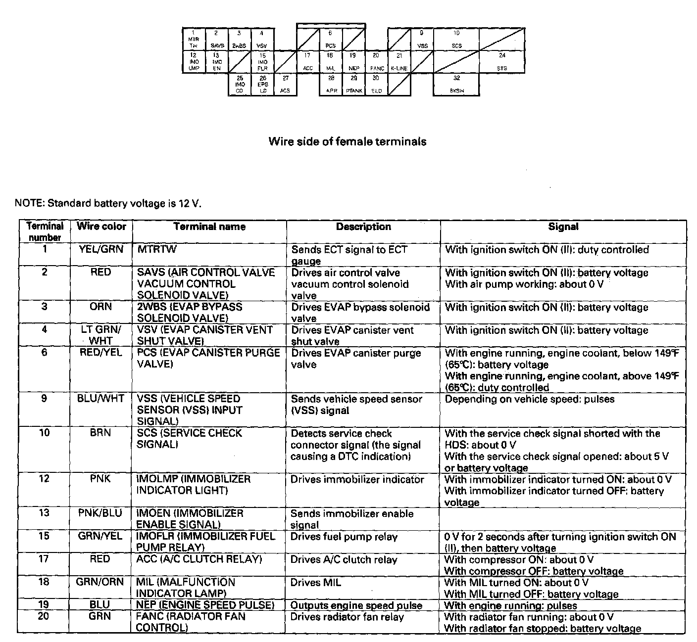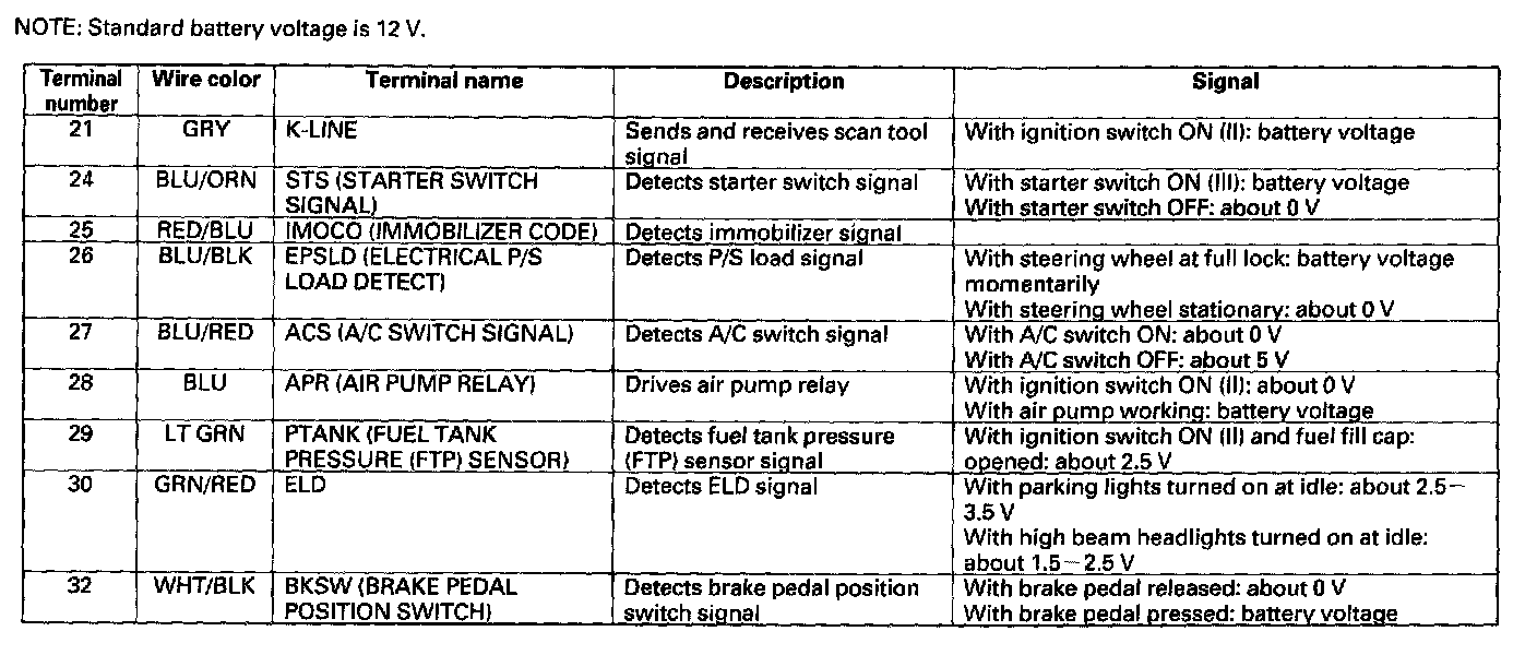 ECM Inputs And Outputs At Connector A (32P) Part 1: