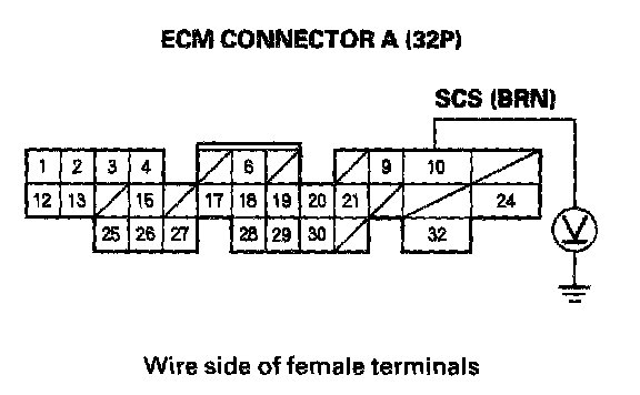 28. Measure voltage between ECM connector terminal A10 and body ground.