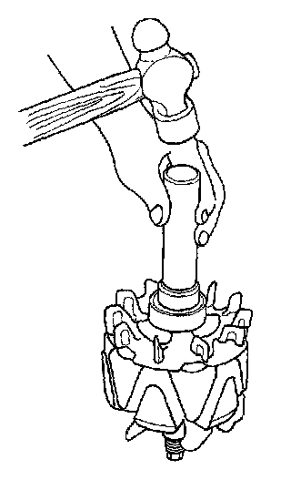 14. With a hammer and commercially available tools shown, install a new rear bearing on the rotor shaft.