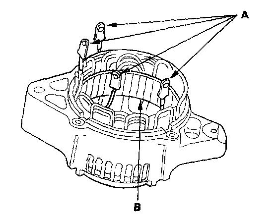 10. Remove the four insulators (A), rear housing (B), and washer(C).