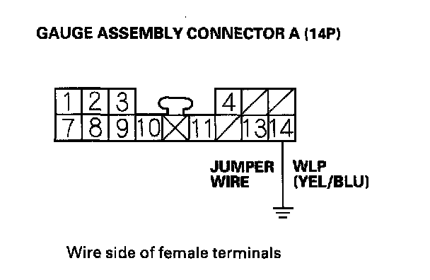 6. Connect gauge assembly connector A (14P) terminal No. 14 to body ground with a jumper wire.