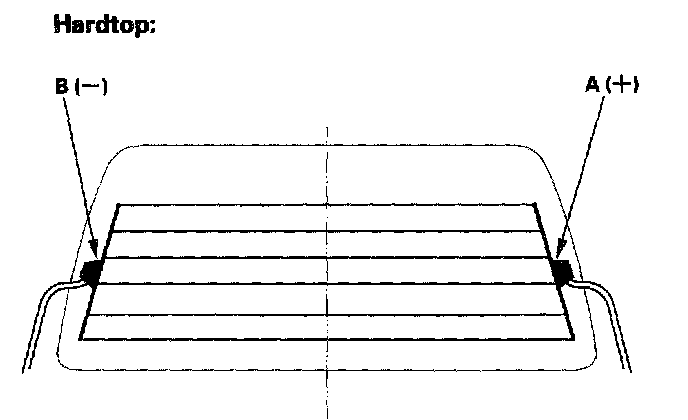 1. Check for voltage between the positive terminal (A) and body ground with the ignition switch and defogger switch ON.
