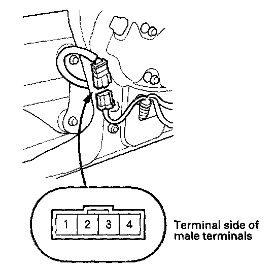5. Connect the test leads of an analog ohmmeter to the No.3 and No.4 terminals.