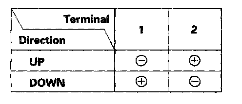 3. Test the motor in each direction by connecting battery power and ground according to the table. When the motor stops running, disconnect one lead immediately.