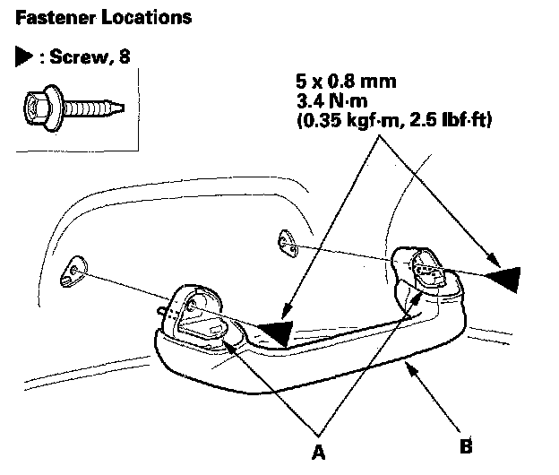 3. From both sides, remove the sunvisor (A) and holder (B).