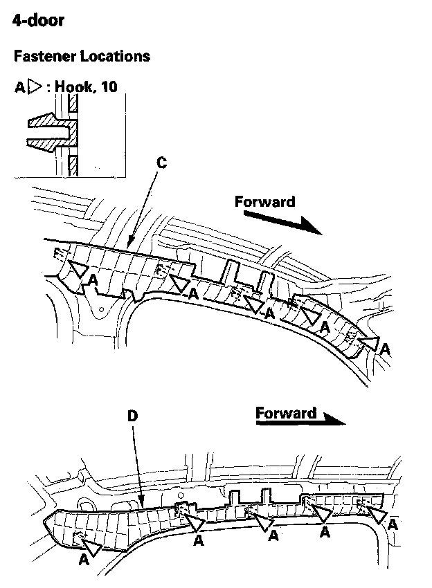 - C-pillar trim, both sides, 2-door without side curtain airbags, 2-door with side curtain airbags, 4-door without side curtain airbags , 4-door with side curtain airbags page