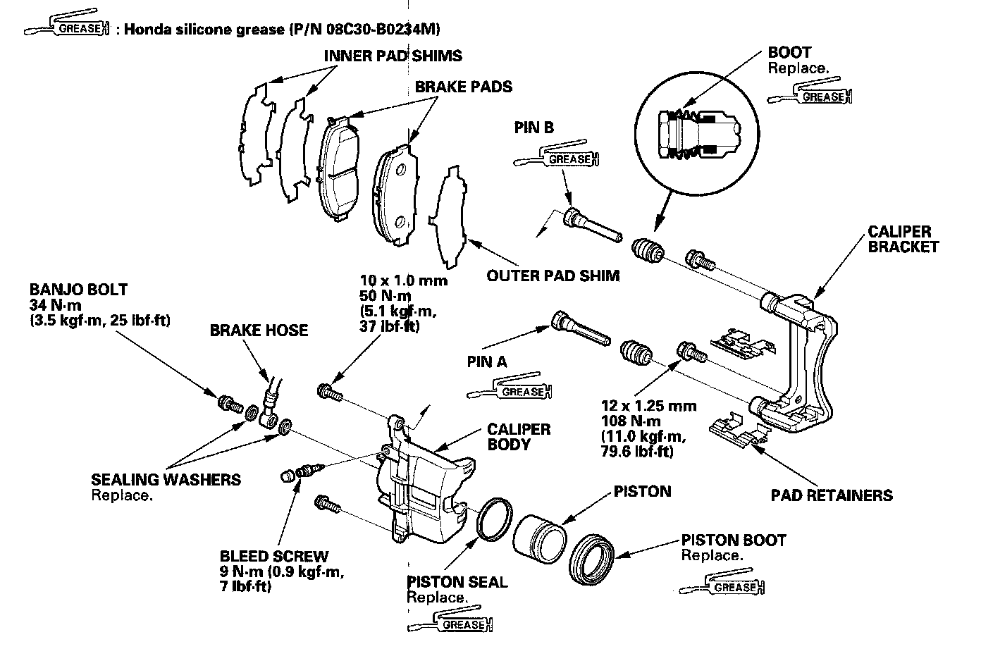 Front Brake Caliper OverhaulCAUTION: Frequent inhalation of brake pad dust, regardless of material composition, could be hazardous to your health.