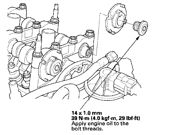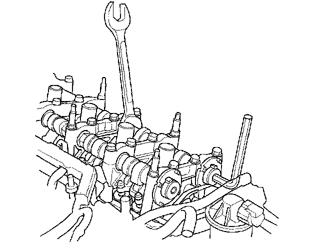 2. Hold the camshaft with an open-end wrench, then loosen the bolt.