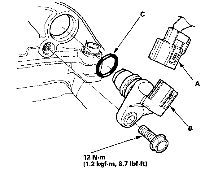 5. Install the sensor in the reverse order of removal with a new O-ring (C).