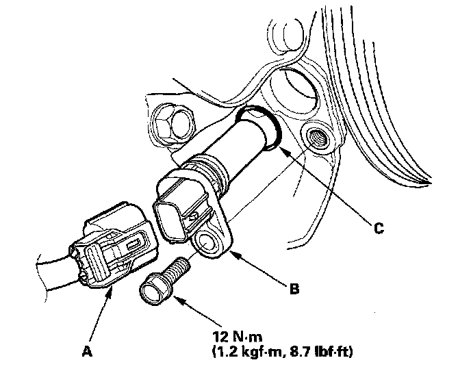 Install the sensor in the reverse order of removal with a new O-ring (C).