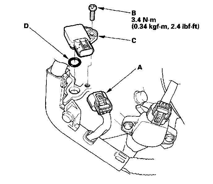 4. Install the sensor in the reverse order of removal with a new O-ring (D).