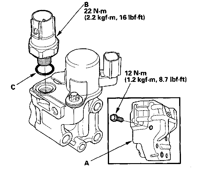 4. Install the switch in the reverse order of removal with a new O-ring (C).