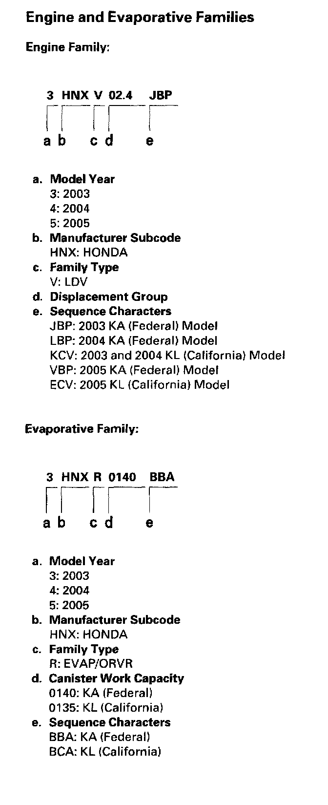 Engine And Evaporative Families: